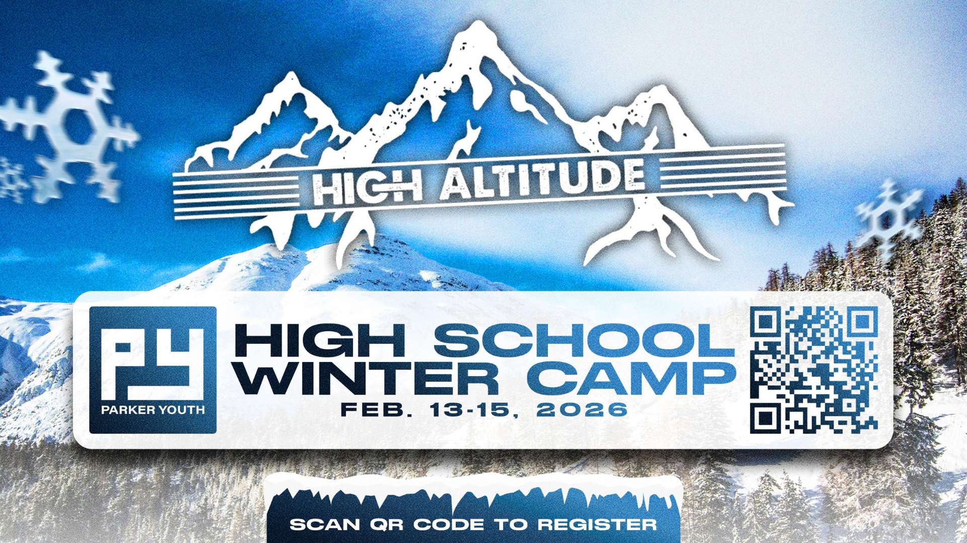 Parker Youth is excited to invite high school students to our High Altitude Winter Camp, happening February 13–15, 2026. This unforgettable weekend is designed to help students step away from everyday distractions and experience God in a powerful way through worship, teaching, and meaningful community. Set in a beautiful winter mountain environment, students will enjoy fun activities, build lasting friendships, and grow deeper in their faith as they encounter God together. Winter Camp is always a highlight of the year, and we can’t wait to see what God will do in the lives of our students during this incredible weekend. Scan the QR code to register and be part of this life-changing experience.